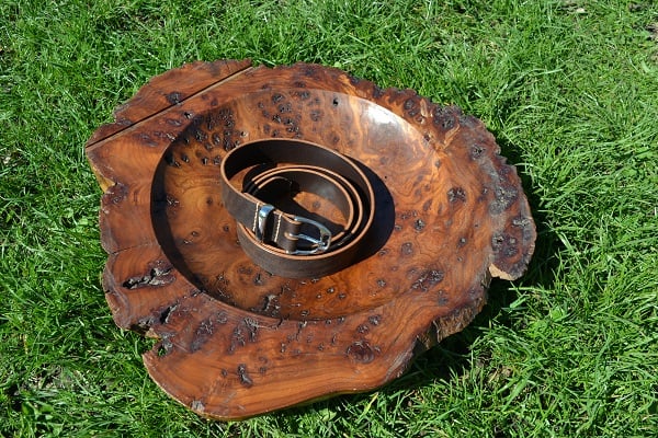 A beautiful full grain veg tan leather in dark brown, with burnished edges left natural: a great belt for jeans or smart wear. As always, the buckels are solid brass and then nickel plated - to last for ever. You can also have a matching dog lead!