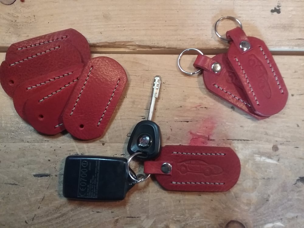 Made to celebrate the 25th birthday of the magnificent Jaguar XK8, this is really a lovely item and a great gift. Made from supple veg tan leather in Jamaica red/brown with silver/grey linen thread decoration and chrome rivet. With, or course, the outline of The XK8 Cat! It really is a lovely thing!