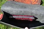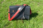 Inspired by Bram Stoker's 1897 Dracula, this bag is the first in the Gothic Literature range of bags from Watermead. Made from 3mm full grain veg tan leather, it has our Raven black body, red strap and metal fittings. The edge of each bag flap follows the edge of the hide that its cut from, so no two bags are ever the same. The flap is held in place with a snap clip. It is constructed using linen thread and copper saddlers rivets. The final touch is a Victorian penny from 1897 fastened to the front, which was the year of publication for Dracula. All in all this is a fantastic bag and will be available in limited numbers.