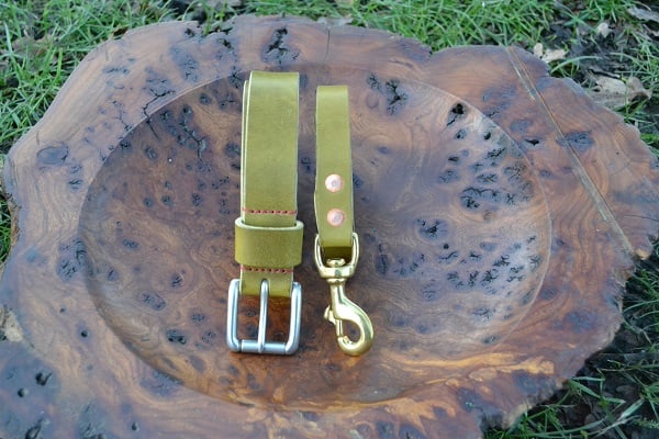 This is also one of oury favourites. The Willow leather is lovely pale green colour, with a high wax content and creates a distressed look when folded. Its one of those leathers that you want to hold, so we are going to make some dog leads out of it too - so you can. These belts come in a variety of stitching colours and buckle combinations.